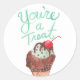 ¡Que sepan que son dulces! Este delicioso pegatina cuenta con un cono de helado con el texto "Eres un trato". Este pegatina presenta obras de arte originales de Melissa Rohr Gindling, copyright 2019. Todos Los Derechos Reservados.