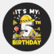 Pegatina Redonda Es Mi 5º Nacimiento Excavadora de Construcción 5 Y
