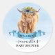Pegatina Redonda Es un Baby Shower de cría de vaca Blue Highland
