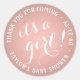 Pegatina Redonda ¡Es un Chica! Relieve metalizado Rosa Gold Faux Ba
