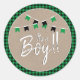 Pegatina Redonda Es un niño Green Buffalo Check Baby Shower