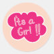 Pegatina Redonda Es una ducha chica de bebé rosa