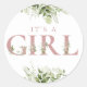 Pegatina Redonda Es una niña Dusty Rose Greenery Floral Baby Shower
