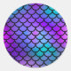 Pegatina Redonda Escamas de sirena azules púrpura rosa verde Fantas
