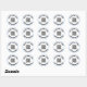 Puede reemplazar la imagen de visualización por el código QR. Hay dos líneas de texto en negro que puede editar para mostrar un mensaje personalizado. (Se muestra: Escanear código QR a RSVP) Estos pegatinas tienen texto negro en un círculo blanco. El pegatina tiene un borde azul para bebé.