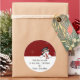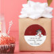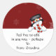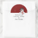 Este pegatina tiene un fondo rojo con copos de nieve blancos. En la parte inferior, el fondo es un blanco brillante. Detrás de la línea divisoria está un lindo dibujo personalizado de Frostie el Hombre de Nieve. Utilícelos como etiquetas de regalo, pegatinas o de cualquier forma que elija.