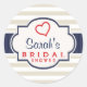 Diseño elegante y lindo de la ducha de novia en colores náuticos Rojo escarlata, azul marino, concha de huevo de rayas blancas con fuente azul marino. ¡Personalizado con el nombre de la novia! Nuestra tienda, Favors and Decor, se especializa en decoración de eventos, fiestas y invitaciones.