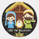 Pegatina Redonda Escena adorable de la Natividad de Navidad con bri