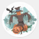 Pegatina Redonda Escena de espantapájaros de Halloween