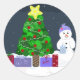 Una bonita escena con un árbol de Navidad decorado, un pequeño muñeco de nieve y regalos bajo el árbol.