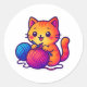 Pegatina Redonda Escena de punto de gato kawaii con sobredimensiona