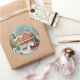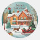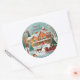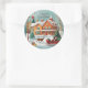 Pegatina Redonda Escena invernal de Navidad alegre verde rojo