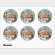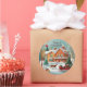 Agrega un toque cálido de fiesta a tus regalos, sobres y embalajes con esta divertida etiqueta redonda de Navidad. La escena de aldea nevada con un trineo y árboles decorados crea un aspecto invernal alegre que es perfecto para regalar, tarjetas y decoración de fiesta.