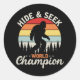 Pegatina Redonda Esconder De Pie Grande Y Buscar Campeón Mundial
