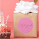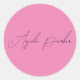 Pegatina Redonda Escritura a mano Nombre profesional simple rosa si