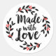 Pegatina Redonda Escritura de Wreath hecha con amor