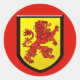 La pintura de Linda Baysinger Peck de un león rojo, desenfrenado, heráldico, medieval, en el escudo amarillo. Imagen © Linda Baysinger Peck Todos los derechos reservados.
