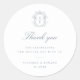 Pegatina Redonda Escudo azul turbio Boda Monograma Gracias