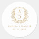 Pegatina Redonda Escudo blanco dorado Boda monograma moderno
