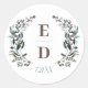 Pegatina Redonda Escudo de jardín | Monograma de Boda azul blanco
