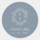 Pegatina Redonda Escudo Floral azul turbio Monograma Boda