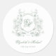 Pegatina Redonda Escudo floral verde sabio Monograma matrimonio ele