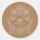 Pegatina Redonda Escudo Monograma Ornamento Boda Dorado Marrón