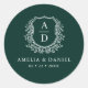 Pegatina Redonda Escudo verde esmeralda Boda de monograma moderno