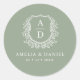 Pegatina Redonda Escudo verde sabio Boda de monograma moderno