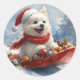 Pegatina Redonda Eskimo americano en Sledge Let it Snow Navidades