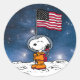 Pegatina Redonda ESPACIO | Snoopy Con Astronauta De Bandera