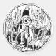 Una imagen en blanco y negro de un espantapájaros en el maíz. Imagen vintage de Scarecrow of Oz de L. Frank Baum (1915).