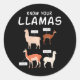 Pegatina Redonda Especie de Alpaca y Llama Perú América del Sur