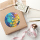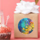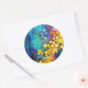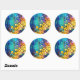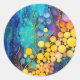 Un cuadro presenta burbujas de colores vivos con un fondo azul profundo y un estilo geométrico abstracto. Los colores son ricos y vibrantes, lo que crea una visión atractiva y dinámica.