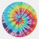 Foto de tela teñida con un patrón de tinte de espiral de arcoiris brillante y colorido.