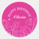 Pegatina Redonda Esquema elegante Floral Hot Pink 30 cumpleaños