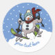 Pegatina Redonda Esquiando A Hombre De Nieve En El Personalizado Go