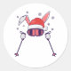 Pegatina Redonda Esquiando Santa Rabbit con Santa Hat y los postes