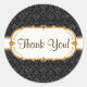 NOTA: Este es un diseño impreso plano. No hay purpurina real, metalizado de oro ni capas elevadas. COLOR PALETTE: oro purpurinoso, dorado y negro. RECOPILACIÓN DE DISEÑO: Notas de agradecimiento coincidentes, Tarjetas de nota, sellos para sobres y artículos de papelería adicionales que coincidan son perfectos para un juego de artículos de escritorio de novia, ducha de novia o invitación a la boda. Diseño gráfico de Audrey Jeanne Roberts, esta imagen de adamascado de estilo moderno y vintage con un diseño floral decorativo tiene un toque de purpurina a la moda. El marco es un patrón de desplazamiento y punto con una influencia Art Nouveau o Art Déco. Los elementos florales de enlucido estilísticamente de las damasquetas se colocan sobre un color de fondo blanco cremoso. Un marco de estilo de corchete tiene puntos de polka y un borde de tipo giratorio de caligrafía. Con este patrón hay una amplia gama de combinaciones de colores disponibles.