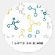 Hermosos pegatinas científicos con un patrón de molécula en colores azules y amarillos. El sentimiento dice "Amo la ciencia" pero puedes personalizarla con tu propia redacción. Pegatinas perfectos para fiestas, reuniones y más. Diseñado por Patricia Alvarez.