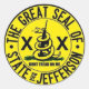Muestra tu apoyo al movimiento de secesión libertaria que ocurre en el norte de California y el sur de Oregón con este pegatina genial que presenta el Gran Sello del Estado de Jefferson.