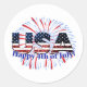 Pegatina Redonda Estados Unidos: fuegos artificiales purpurinas de
