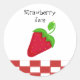 Una excelente etiqueta para añadir a sus tarros de fresa caseros. Una fresa roja y lujosa con un tallo verde brillante. Un borde de patrón cuadrado rojo y blanco a lo largo de la parte inferior.