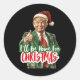 Pegatina Redonda Estaré en casa para Navidades Divertido Santa Clau