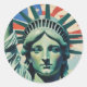 Pegatina Redonda Estatua de la Libertad y Bandera Estadounidense en