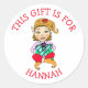 Pegatina Redonda Este regalo es para, Chica Elf con regalo