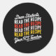 Pegatina Redonda Estimados Estudiantes, Leer La Receta De Su Profes