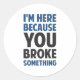 Pegatina Redonda Estoy aquí porque rompiste algo