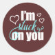 Añade un poco de humor El día de San Valentín con este pegatina tierno y pegajoso que dice 'Estoy atrapado en ti'. El texto está adornado con corazones pequeños y se puede usar en cualquier color de fondo de su elección.