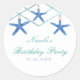 Pegatina Redonda Estrella de mar y líneas modernas Favor de playa e